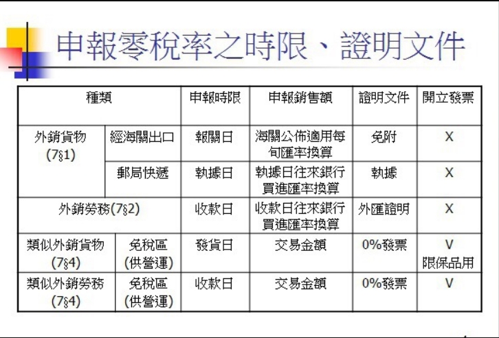 | 21.零稅率時限及證明文件 |